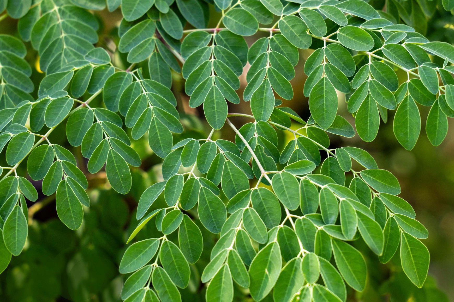 Moringa is a tree. Its leaves contain 47% of the daily recommended intake of vitamin A per 10g serving, along with significant amounts of vitamin C, vitamin K, iron, and calcium. Every part of the tree is edible. It grows in drought conditions that would kill most crops. In sub-Saharan Africa and South Asia, UNICEF and WHO distribute moringa leaf powder as a malnutrition intervention for children and pregnant women.